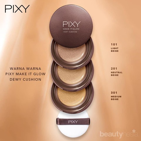Foto: https://www.instagram.com/pixycosmetics/Pixy Make it Glow Dewy BB Cushion memiliki tiga pilihan warna, yakni light beige, neutral beige, dan medium beige. Ketiga warnanya cenderung medium hingga natural undertone sehingga pemilik kulit sawo matang masih dapat menikmati cushion ini. Cushion sawo matang ini juga mempunyai kemampuan coverage medium to full coverage dengan hasil akhir dewy atau mengkilap.