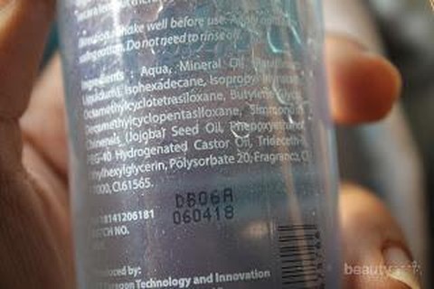 Kocok produk terlebih dahulu supaya bagian antara air dan minyak tercampur. Kemudian, tuangkan secukupnya pada kapas khusus wajah. For eye make up, kamu bisa mendiamkan kapas selama 10-15 detik lalu hapus makeup dengan gerakan memutar secara halus dan pelan. Jika digunakan untuk menghapus makeup waterproof kamu memang perlu mengusap 3 hingga 5 kali dulu baru benar-benar bersih.