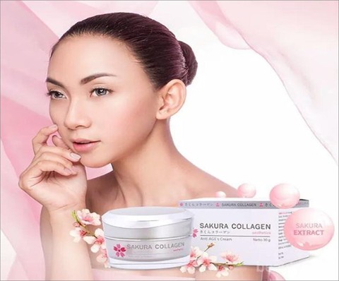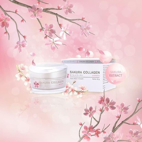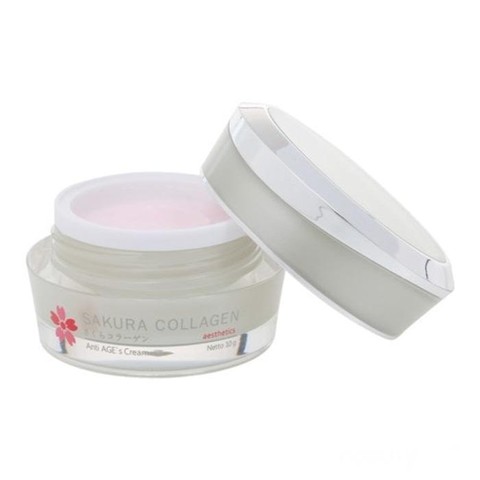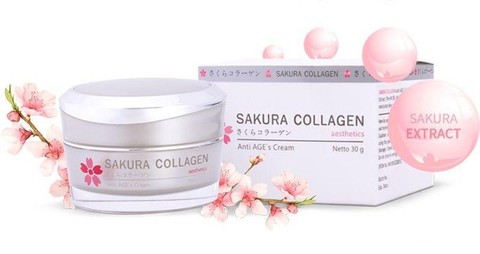 Sakura Collagen Age’s Cream adalah krim Anti AGE`s yang memiliki kandungan ekstrak bunga sakura untuk mencegah proses penuaan dan hydrolized fish collagen yang berfungsi menambah produksi kolagen dan menjaga elastisitas kulit. Selain bahan berkhasiat lainnya, adanya kandungan sodium hyaluronic di dalam skincare ini berfungsi menjaga kelembaban, pro vitamin B5 untuk meningkatkan regenerasi sel dan vitamin E sebagai antioksidan.