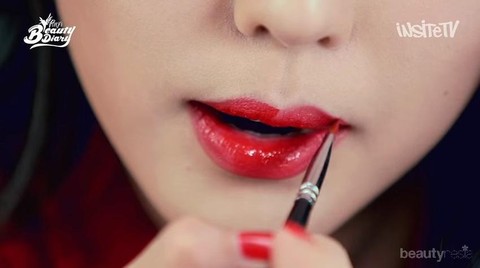 Garis bibir yang tegas merupakan poin penting untuk menghasilkan bibir merah yang seksi. Jadi usapkan lipstick merah dengan finishing glossy pada seluruh bibirmu, kemudian pertegas garis luarnya dengan menggunakan brush. Penting untuk memilih lipstick yang dapat melembapkan agar bibir tak terlihat kering.