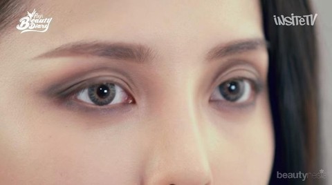 Menggunakan brush berukuran lebih besar, usapkan lagi eyeshadow berwarna dark espresso untuk mempertegas garis yang sudah digambar pada poin sebelumnya agar terlihat semakin jelas.