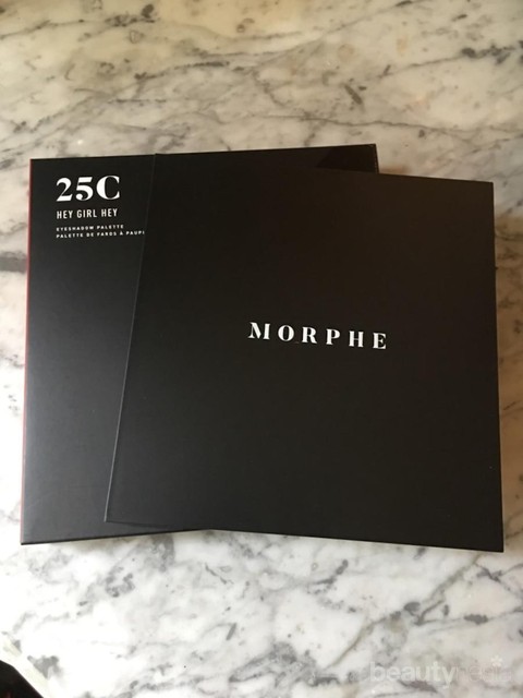 MORPHE 25C Hey Girl Hey Eyeshadow Palette tersimpan rapi di dalam sebuah kotak berwarna hitam yang simple dan sturdy. Di dalamnya tersimpan 25 eyeshadow tanpa cermin pada tutupnya. Kamu juga nggak akan menemukan nama-nama shade di bagian bawah palet ini. Yap, nama-nama pada tiap shade-nya tersedia pada plastik pelindung di atas eyeshadow.