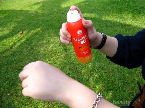 Sunblock adalah benda wajib yang harus dibawa saat kamu pergi ke pantai. Ada kalanya sunblock yang digunakan untuk wajah dan tubuh pun berbeda. Belum lagi harus dioleskan berkali-kali, merepotkan sekali rasanya. Tapi semua permasalahan itu dapat terselesaikan hanya dengan satu produk, yaitu sunblock spray!