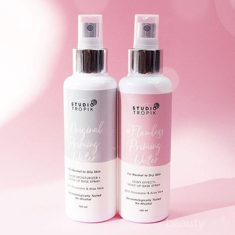 Setelah menggunakan skincare, Tasya Farasya memulai makeupnya dengan menggunakan Flawless Priming Water dari Studio Tropik yang ternyata dapat membantu membuat kulitnya terlihat sangat dewy dan sehat. Enggak cuma di awal makeup, Tasya juga menggunakannya di akhir makeup.