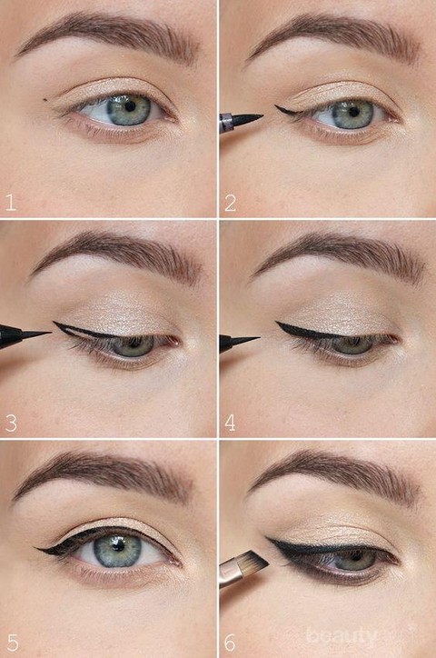Foto: https://id.pinterest.com/pin/517280707180863913/Untuk mendapatkan make up natural berikutnya adalah mengaplikasikan eyeliner dengan cara satu arah dalam sekali usap dari arah dalam hingga ke bagian ar mata kamu. Dengan cara ini kamu bisa mendapatkan ketebalan yang merata. Jika kurang tebal bisa kamu ulang pengaplikasian anmun tetap satu arah. Untuk mencegah terjadinya kerutan pada kelopak mata, kamu bisa tarik sedikit kelopak matamu ke arah atas dan melihatlah ke arah bawah ketika mengaplikasikan eyeliner.