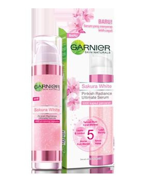 Kalau kamu takut wajahmu terasa lengket karena serum, kamu bisa mencoba serum dengan formula yang ringan dan dapat menyerap cepat seperti serum pencerah Sakura White Pinkish Radiance Ultimate Serum dari Garnier. Seperti rangkaian Garnier Sakura White lainnya, serum ini diperkaya dengan ekstrak bunga Sakura sebagai whitening agent. Tapi bedanya, serum satu ini juga dilengkapi dengan 5.000 kapsul pencerah, sehingga dapat mencerahkan kulit lebih efektif. Selain mencerahkan, serum wajah ini juga dapat memperbaiki tekstur kulit, menjadikan kulit terasa lebih halus, lembut, dan elastis.