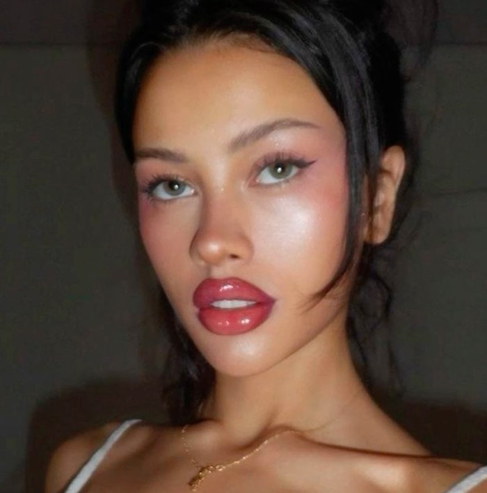 - Lips: Juicy & Bold: Bibir adalah bintang utama! Gunakan lip tint, gloss, atau lipstick warna berry seperti raspberry red, mulberry, atau deep rose. Ombre lips juga cocok untuk tampilan ala “habis makan buah” yang menggoda.