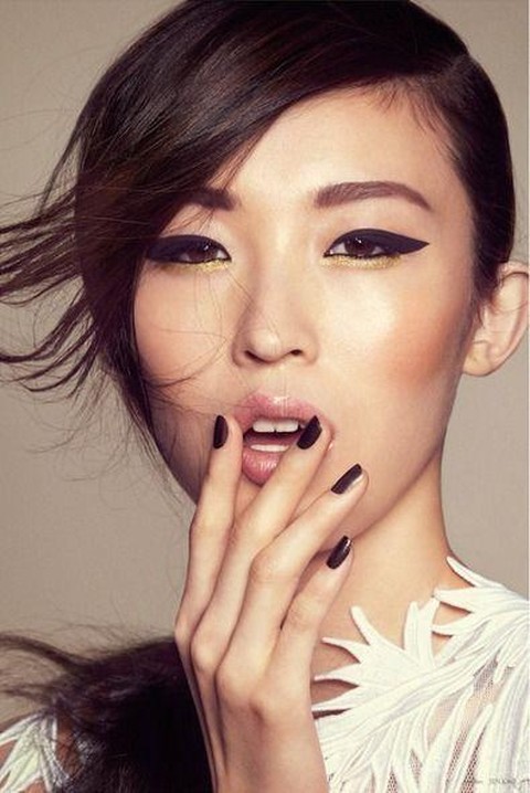 Foto: https://id.pinterest.com/pin/313352086544910160/Dengan menarik eyeliner dari sudut bawah mata dan sudut atas mata dan membuat eyeliner terlihat tegas di mata. Dengan menggunakan heavy eyeliner hal ini akan mempertegas struktur dan garis mata.