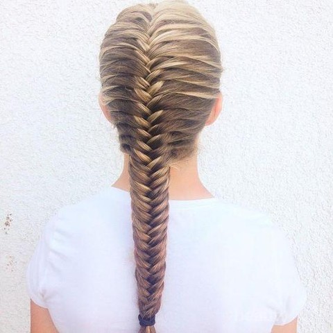 - Seperti langkah kedua, ambil sedikit bagian kanan rambut, kemudian tambahkan rambut dari sisi kanan seperti membuat French braid, silangkan ke bagian kiri. Ulangi pada bagian kiri rambut hingga ke bawah. source: https://s-media-cache-ak0.pinimg.com/736x/61/85/d1/6185d1ce7ae06ebd149c2f8747138960.jpg