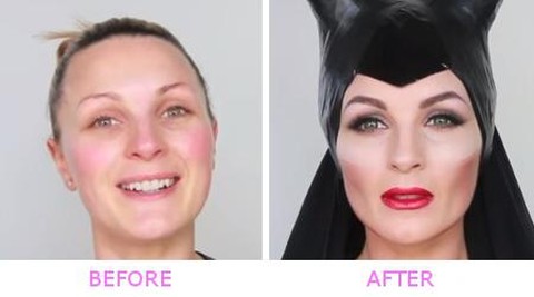 Maleficent memiliki ciri khas wajah putih pucat dengan lipstick merah dan tulang pipi yang menonjol. Tulang pipi Angelina Jolie yang tinggi dinilai sangat pas untuk memerankan karakter Maleficent. Dengan permainan kontur wajah pada base makeup, kamu bisa memiliki tulang pipi yang menonjol seperti Angelina Jolie dalam film Maleficent.