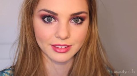 Gunakan lipstick berwarna merah dengan sentuhan warna pink keunguan. Kamu juga bisa mengoleskan highlight di bagian bawah mata atau tulang pipi agar warna makeup terlihat lebih menonjol.
