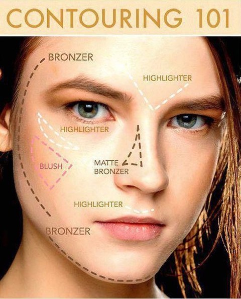 1. Gunakan bronzer atau multipowder yang warnanya 1 tingkat lebih gelap untuk digunakan pada bagian pipi, pelipis, hingga bagian atas dahi. Kamu juga bisa menggambar angka 3 untuk daerah ini hingga daerah dagu untuk menciptakan efek wajah yang lebih tirus.