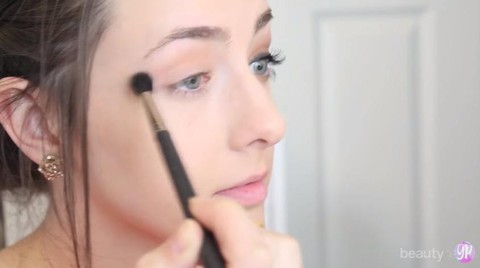 Sedangkan untuk area kelopak mata, beri sentuhan brown eye shadow yang mengandung pearl. Pemberian pearl ini bertujuan untuk menciptakan kesan glowy.