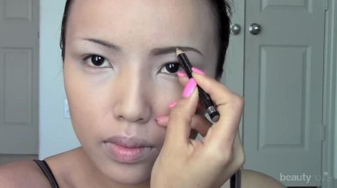 Gambar alis secara penuh dan buat agar lebih tipis di bagian ujungnya. Bentuk alis yang tajam juga cocok untuk kamu yang memiliki wajah kecil agar proporsi wajah terlihat lebih bulat.
