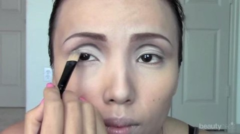 Agar bentuk mata terlihat lebih bulat, pertama-tama aplikasikan shadow berwarna medium brown di bagian bawah mata dengan brush. Kemudian gambar eyeline secara tipis dan buat bagian ujungnya sedikit lebih tebal dengan bentuk wing ala cat's eye.