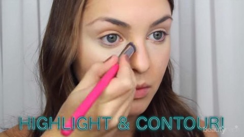 Ciptakan pula tampilan tiga dimensi pada wajah dengan menambahkan contouring warna yang lebih gelap pada hidung dan di bawah tulang pipi (agar wajah tampak lebih tirus).