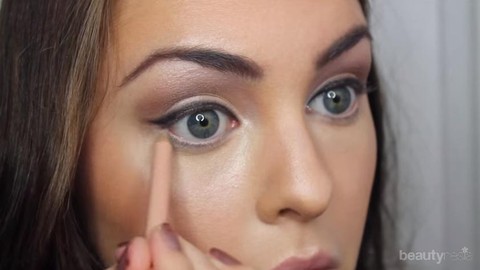 Untuk membuat mata tampak lebih lebar, tambahkan eyeliner pencil warna peach atau yang senada dengan warna kulit pada garis mata bagian bawah.