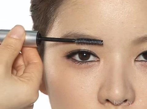 Isi bagian alis yang jarang dengan brow shadow berwarna dark brown mengikuti bentuk alis. Sisir dengan clear mascara setelahnya untuk merapikan sekaligus menjaga bentuk alis agar tidak mudah berantakan.