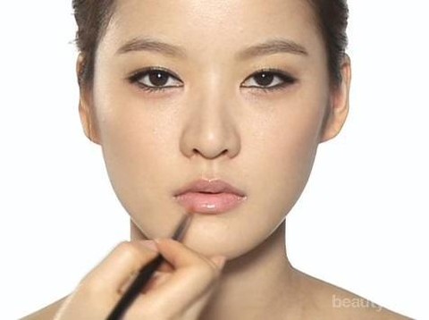 Oleskan lipstick berwarna nude pink menggunakan lip brush pada seluruh bibir hinga merata. Tambahkan lip gloss di atasnya untuk tampilan bibir yang terlihat lembab dan bervolume.
