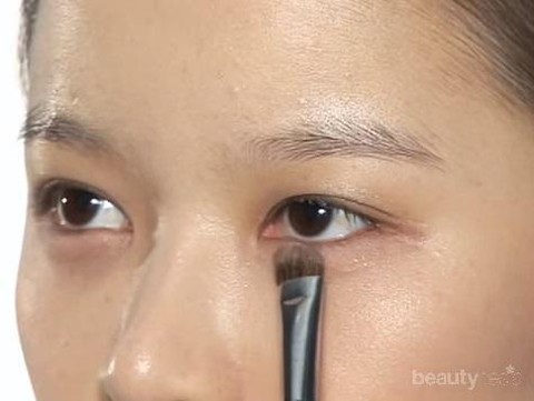 Usapkan eyeshadow berwarna shimmery beige dan usapkan di bagian bawah mata untuk memberi tampilan yang fresh.