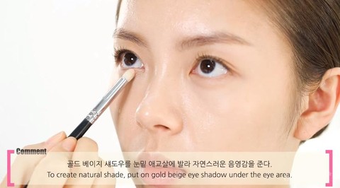 Untuk menyempurnakannya agar terlihat natural, beri eye shadow warna gold beige untuk garis mata bagian bawah.