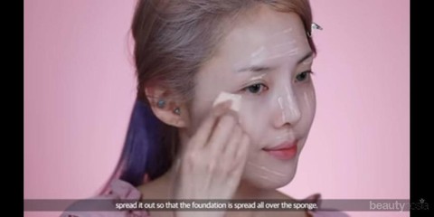 Kamu bisa mengaplikasikan foundation dengan warna satu tingkat lebih terang dari tone kulit. Kali ini, dalam Channel Youtube PONY Syndrome menggunakan shade Vanila. Ambil foundation menggunakan spatula kemudian tap-tap merata menggunakan sponge.