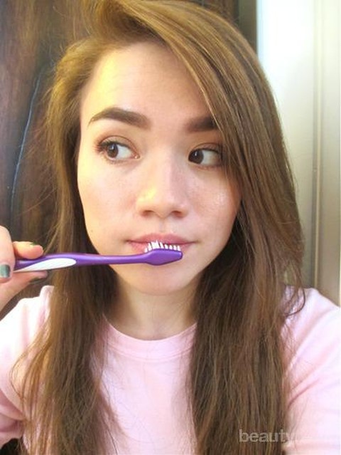 Lakukan scrub pada bibir untuk mengelupas kulit kering dengan sikat gigi.