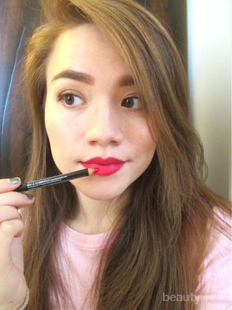 Aplikasikan lipliner di sekitar bibir dan seluruh bibir. Dengan cara ini mengantisipasi jika lipstik luntur, masih ada warna merah yang tersisa dari lipliner.