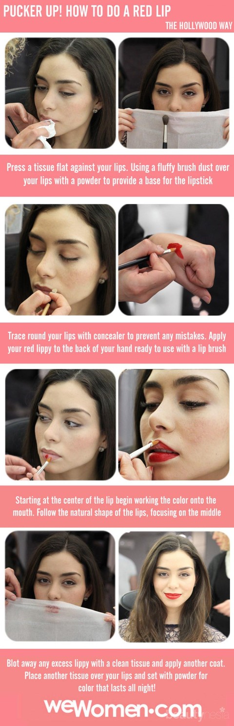 Lipstick dengan warna merah selalu tampak berani dan cantik meski tergolong klasik. Siapa pun yang melihat penampilan Angelina Jolie, Taylor Swift, atau Scarlett Johansson pasti menginginkan bibir merah menyala mereka. Ikuti tutorial berikut ini untuk mendapat warna bibir merah menyala.