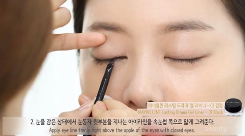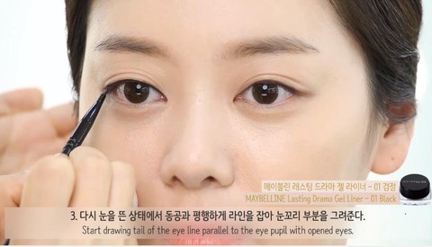 Eyeliner merupakan salah satu produk kosmetik yang wajib dimiliki karena jika makeup tanpa menghias garis mata rasanya akan kurang. Berikut cara menggambar garis mata yang natural menggunakan gel eyeliner yang dilakukan oleh makeup pro Jung Saem Mool.