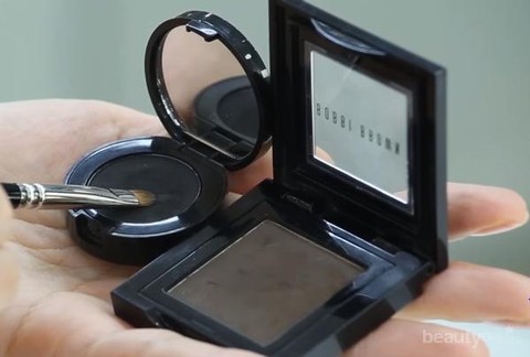 Dengan point brush 2 sisi, beri warna black shadow dan brown shadow di sisi yang lain. Hal ini bertujuan untuk memperhalus pinggiran garis mata. Lalu ratakan sebelum mengering agar warna eyeliner tampak natural.