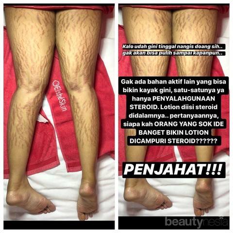 Garis-garis berwarna merah kecoklatan ini memenuhi bagian kaki pasien tersebut. Berita viral inipun membuat publik terkejut dan takut dengan penggunaan lation pemutih.
