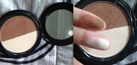 Make Over face contour kit ini teksturnya agak powdery, jadi membantu banget bagi para pemula untuk belajar highlight dan contouring karena mudah banget di-blend nya. Di lain sisi, teksturnya yang powdery ini justru bikin bubuknya bertebaran dimana- mana setiap habis dipake daaan bikin kemasan cepet kotor!