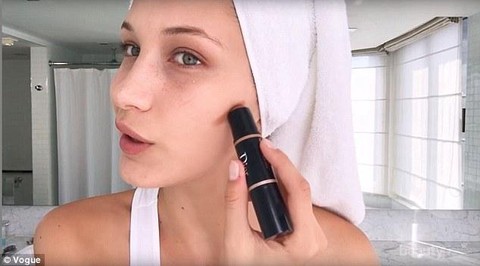 Bella, dalam video untuk majalah Vogue, mengatakan kali ini ia kelihatan kelelahan karena bepergian selama 2 bulan penuh. Apa solusi untuk wajah kelelahan ini? Bella menjawabnya dengan concealer. Concealer tersebut ia gunakan hampir ke seluruh bagian wajah, terutama di bawah mata karena Bella memiliki dark circles, juga di dagu, hidung, dahi, juga di pipi. “Put it, like, everywhere,” katanya. Setelah itu, Bella menggunakan Beautyblender untuk membaurkan concealer tersebut.