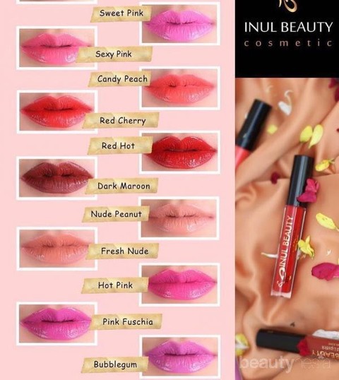Kosmetik artis Inul Daratista ini memiliki 11 shades mulai dari warna nudes, fuschia, orange, pink, merah terang hingga merah tua. Warna-warna Inul Beauty Lip Cream cocok bagi mereka yang suka warna-warna menyala. 11 shades tersebut antara lain: