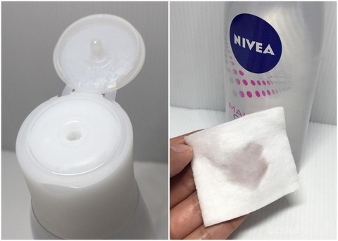 Seperti produk sejenis yang beredar di pasaran, micellar water Nivea memiliki tekstur layaknya air bening, tanpa tambahan pewarna atau pewangi buatan. Sama seperti Bioderma, produk ini tidak mengandung alkohol, jadi tidak terasa dingin saat diaplikasikan ke kulit. Cara penggunaannya pun standar, cukup basahi kapas, lalu usap ke wajah hingga bersih.