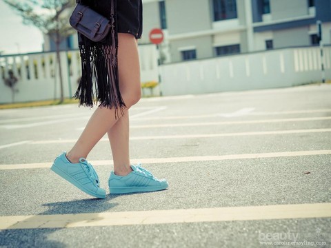 Cara terakhir yang paling mudah untuk memadukan sepatu berwarna pastel yang kamu miliki adalah dengan menggunakan pakaian serba hitam. Dengan warna gelap yang kamu gunakan, gaya kamu akan lebih netral dan segar dengan sepatu warna pastel yang kamu gunakan. Jika ingin tampil lebih santai, kamu bisa menggunakan kaos dan celana pendek berwarna hitam dan disempurnakan dengan sepatu warna pastel.