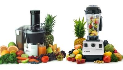 Kebalikan dari juicer, menggunakan blender untuk memproses jus buah dapat menurunkan kadar vitamin dalam buah. Akan tetapi jus yang diblender biasanya tetap menyatu dengan ampasnya bila tidak disaring lagi, sehingga lebih kaya serat.