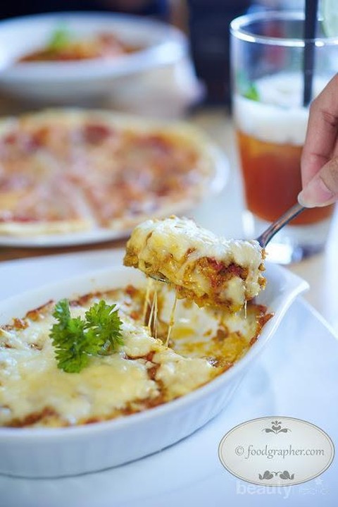 Rendang Lasagna. Lasagna berbumbu rendang? Bila biasanya lasagna didominasi dengan rasa saus Bolognese, kali ini dipadu dengan bumbu rendang. Rasa pasta, mozzarella cheese, dan saus rendang mampu menciptakan perpaduan rasa yang sempurna.