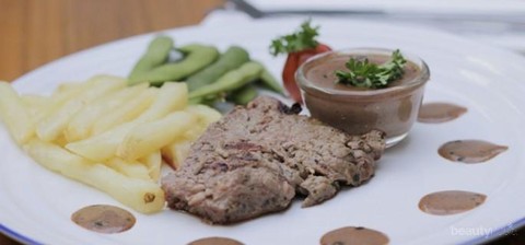 Grilled Beef with Special Sauce. Mungkin jika dilihat sekilas tampak seperti sajain steak pada umumnya. Tapi sebenarnya yang membuat sajian ini berbeda adalah saus spesial yang ternyata terbuat dari cokelat. Perpaduan gurihnya daging yang dipanggang menyatu dengan manisnya cokelat.