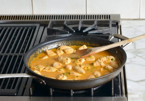 - Masukkan daging ayam dan aduk bersama tumisan bumbu hingga merata.