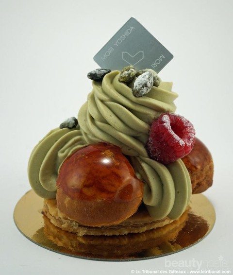 Kue karya Mori Yoshida ini choux yang disusun bertingkat dan dilumuri whipped cream.https://pakaroti.com/post/trend-update/latest-trend/menjaring-konsumen-lewat-keunikan-pastry-bergaya-jepang |