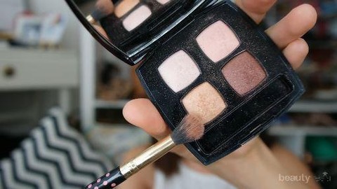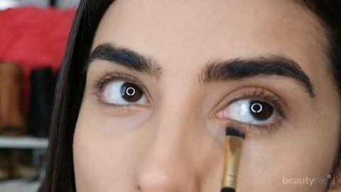 Gunakan eye primer pada kelopak mata sebelum mengaplikasikan eyeshadow. Pilih eyeshadow warna coklat muda lalu sapukan ke seluruh kelopak mata.