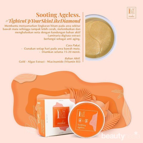 Nah, yang terakhir ada Maska Soothing Ageless Hydrogel Eye Patch. Eye patch ini berwarna dan memiliki kandungan emas di dalamnya. Tidak hanya itu, masih ada kandungan lain seperti HA, algae serta kolagen. Alhasil sangat ampuh untuk menghidrasi kulit, menyamarkan garis halus, membuat kulit area mata lebih glowing, mengurangi bengkak di bagian bawah mata dan bisa digunakan sebagai cara menghilangkan mata panda yang ampuh.