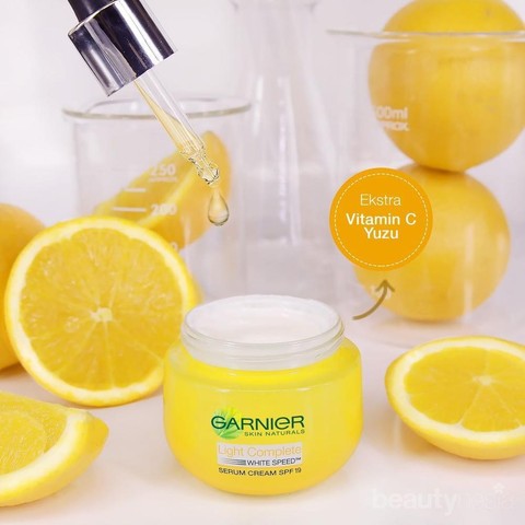 Garnier Light Complete White Speed Yuzu Whitening Serum Cream SPF 19 Pelembab wajah ini sangat unik ladies. Karena, kandungan serum didalamnya. Otomatis performa cream menjadi sangat