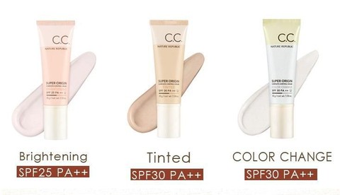 Nature Republic memiliki 3 varian CC Cream untuk seri "Super Origin", yaitu Tinted, Color Change, dan Brightening. Seluruh formulanya dibuat hampir mirip satu sama lain, dengan keunggulan formula yang sangat melembabkan kulit dengan tekstur yang creamy.