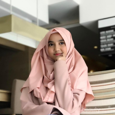 Nah, kalau foto berikutnya ini memang kelihatan sekali sisi keanggunan seorang Wirda. Sebagai muslimah, Wirda tampil dengan syar’i mengenakan hijab yang menutupi dada. Model busana muslimah yang ia kenakan pun cukup kekinian dan pilihan warna soft yang banyak disukai muslimah remaja masa kini.