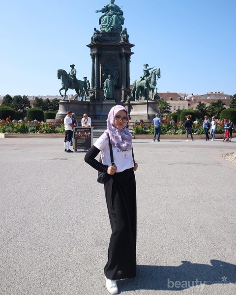 Potret Cantik dalam Balutan T-shirt dan Rok Sepan Panjang