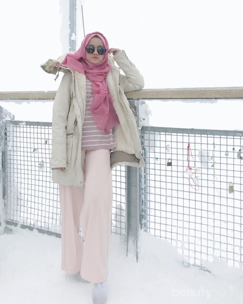 Foto di atas memperlihatkan Wirda yang sedang menikmati liburan musim dinginnya. Mengenakan jaket tebal dan celana kulot, Wirda tetap terlihat fashionable. Tidak lupa, aksesori kacamata hitam andalannya pun melengkapi potret cantiknya di foto ini.