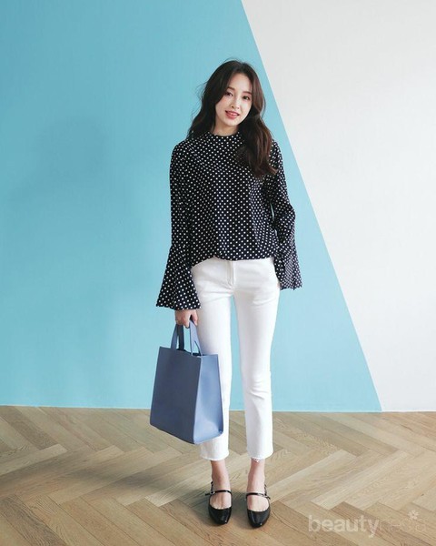 Foto: IstimewaMemadukan white jeans dengan atasan bermotif polka membuat tampilan kamu makin chic. Bisa juga untuk outfit kantor jika tempat kerja kamu tidak terlalu kaku, Ladies.